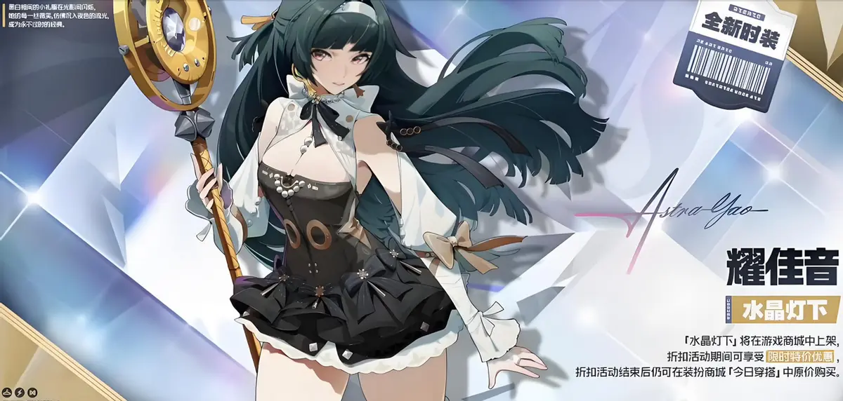 耀佳音的皮肤是黑白色礼裙,大雷音寺加超棒肉腿,与黑白礼装交相辉映,我感觉老米真的很喜欢歌手类角色,崩铁还有知更鸟嘞。
